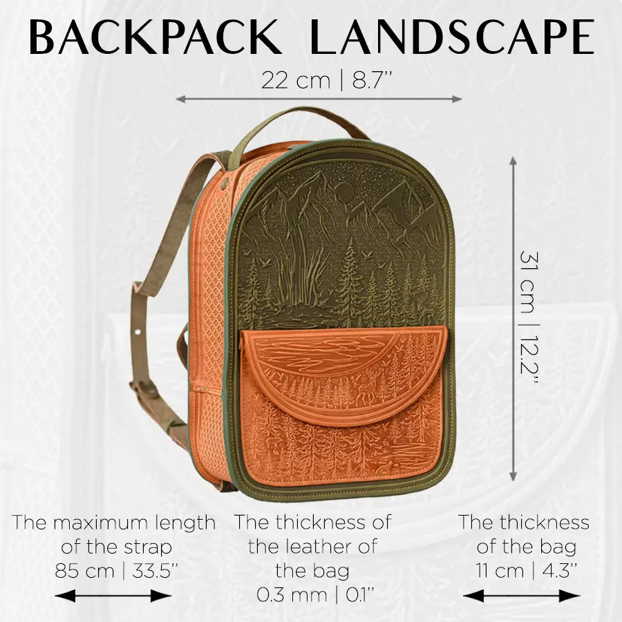 Discover the beauty of nature with our Landscape handmade leather backpack, expertly crafted from reliable natural cattle leather. This backpack combines durability, style, and the breathtaking allure of Carpathian landscapes.