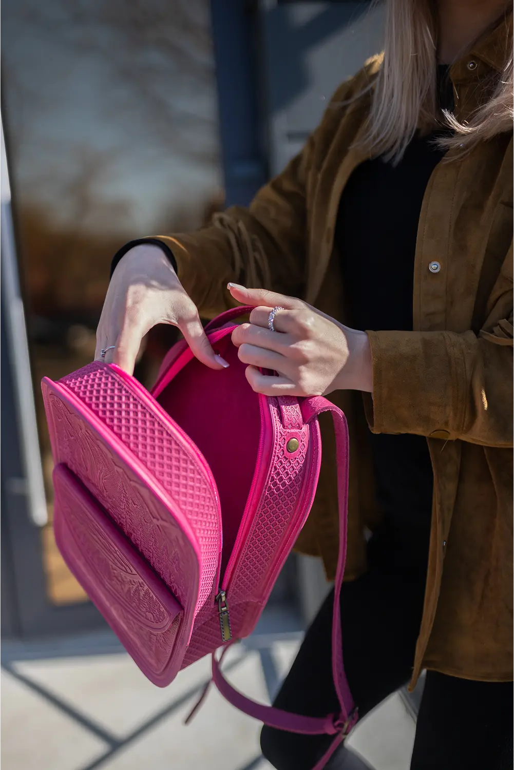 Experience the perfect blend of craftsmanship and natural inspiration with our Landscape backpack, a captivating accessory that celebrates the splendor of the Carpathian Mountains.