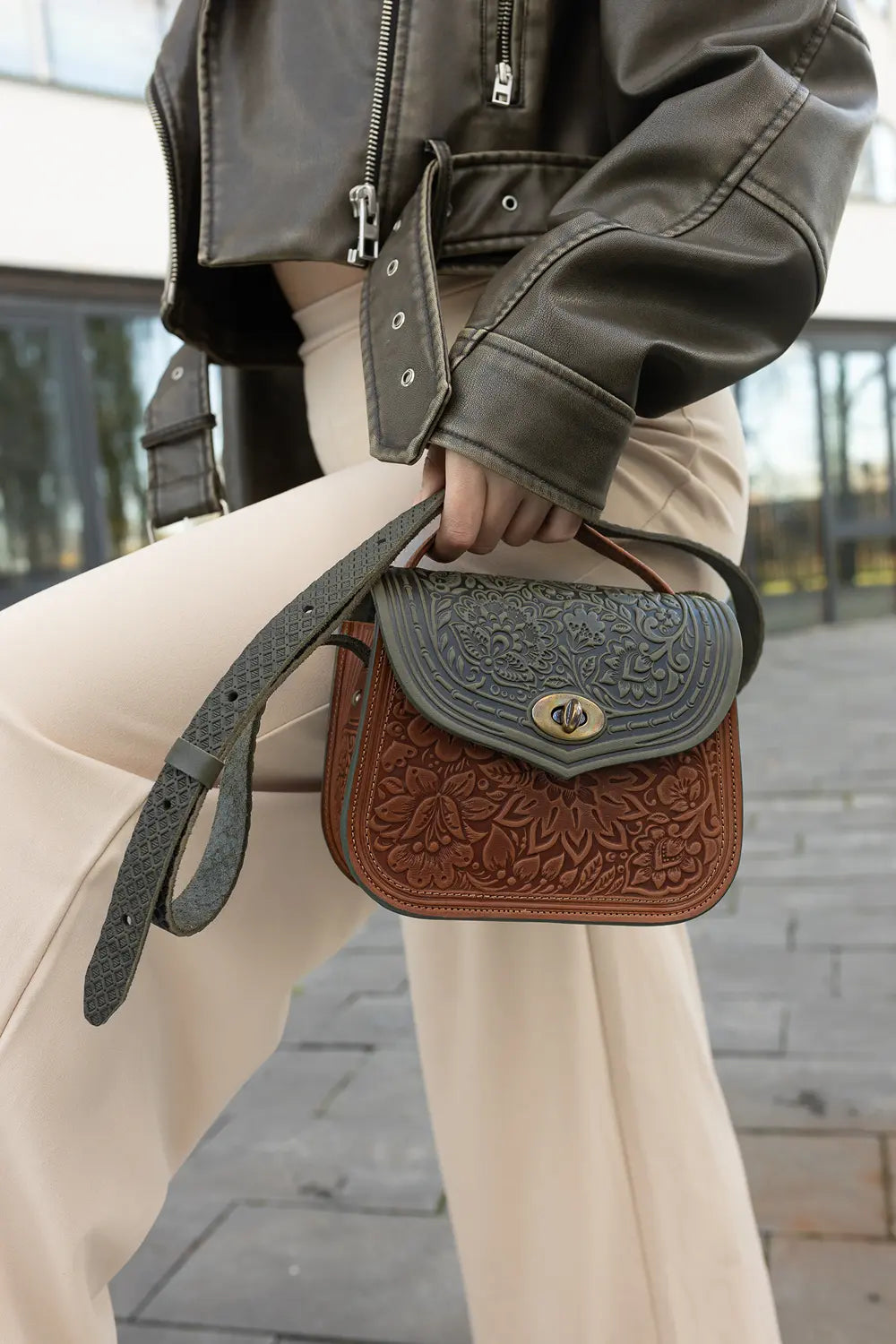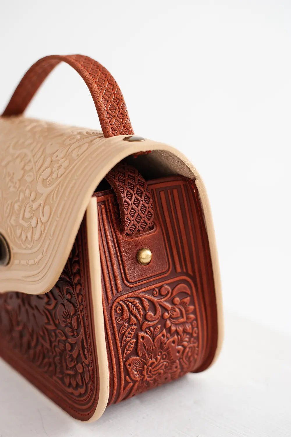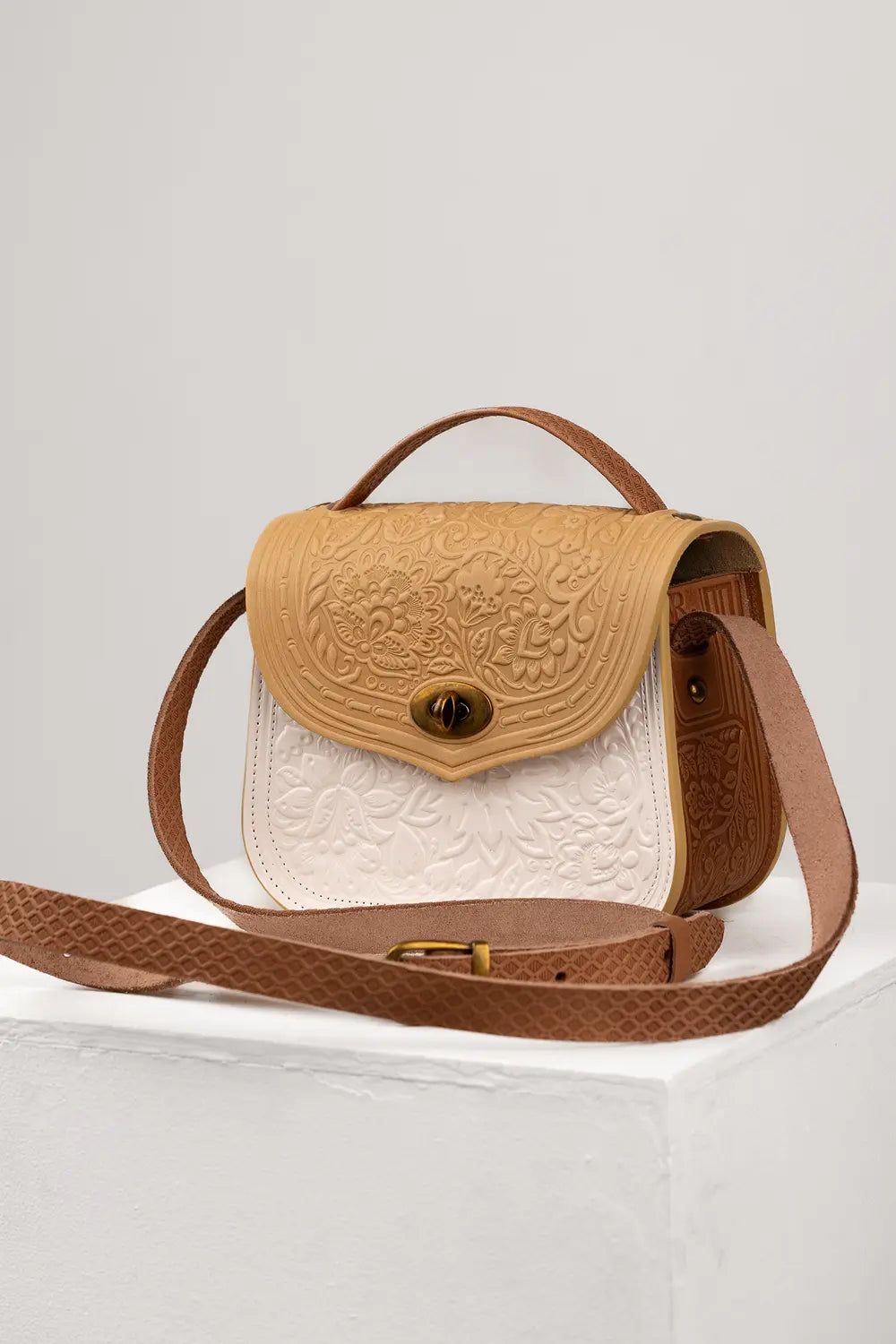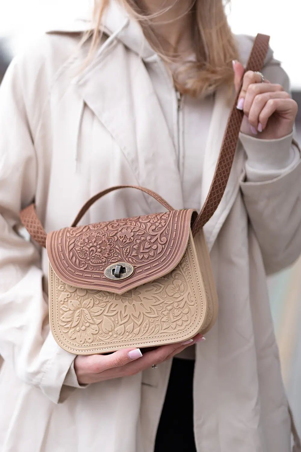 Embrace the combination of style and functionality with our Paint Short Handle handbag. Its floral design, genuine leather accents, and roomy interior make it a must-have accessory for any woman.