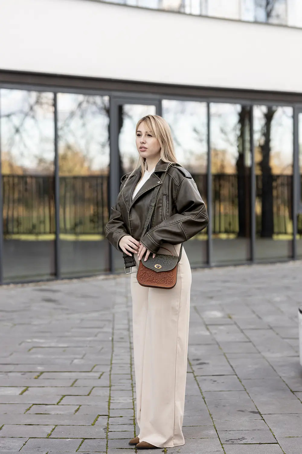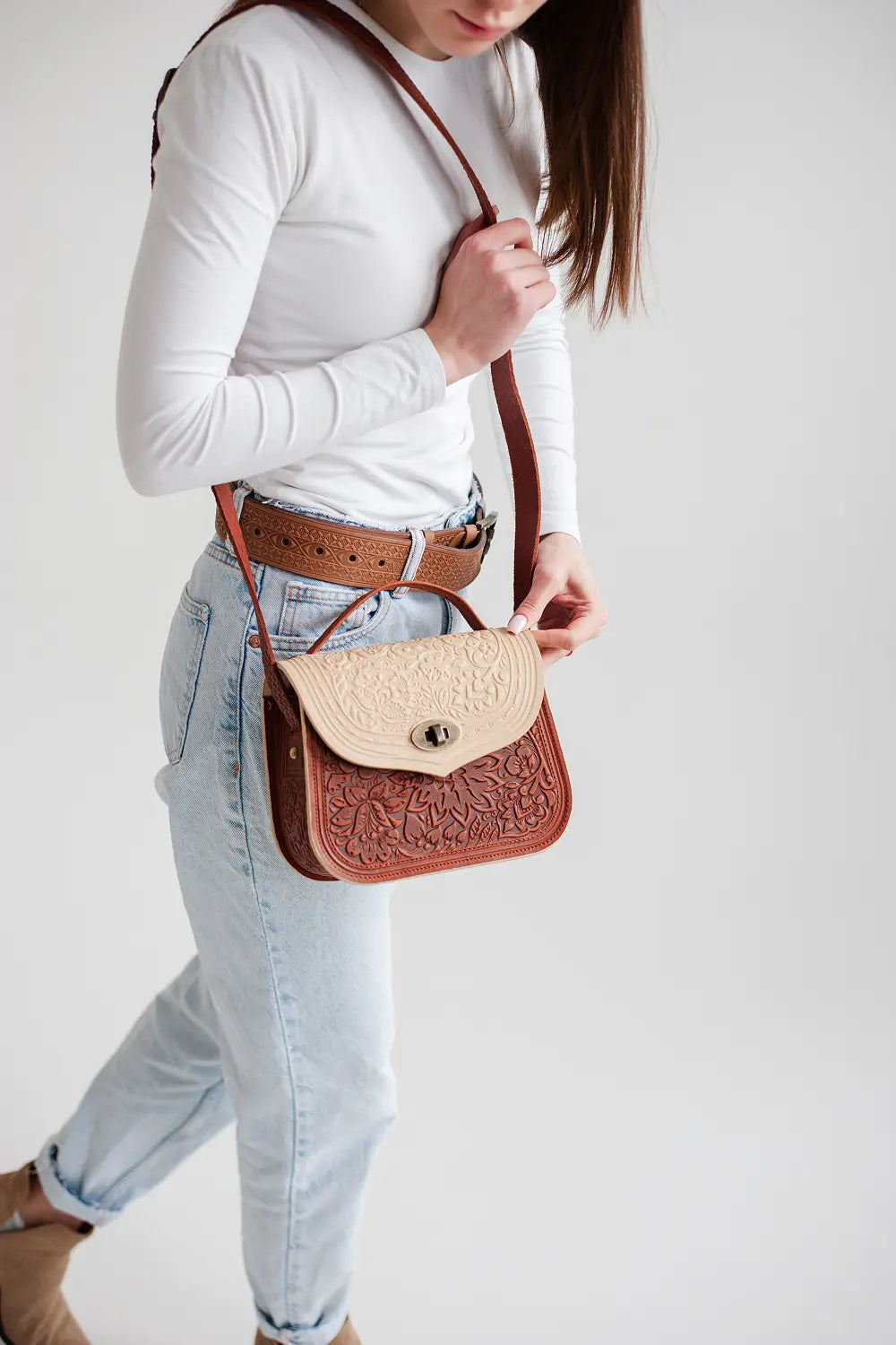 Crafted with attention to detail, this handbag features a genuine leather pocket inside, providing convenient storage for your valuables. The long, adjustable strap allows for comfortable crossbody or shoulder wear.